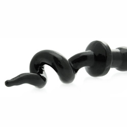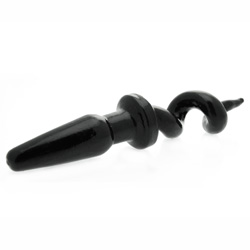 Category: Butt Plugs Code: 665-2018 Humiliate and make them squeal with this black pig tail butt plug. Made of soft rubber, it measures 9 inches total of which 4 inches are insertable and 1.25 inches in diameter at its widest point. Color: Black Brand: Master Series