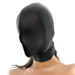 Category: Masks Code: 665-3826 This comfortable full face hood is designed to stretch completely over the head, allowing just a hint of light in while impairing vision and awakening other senses. The shiny black hood can be worn by him or her, and the thin lightweight fabric makes breathing and hearing a snap. One size fits most. Color: Black Brand: PipeDream