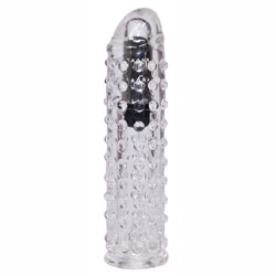 Category: Penis Sleeves Code: 665-2076 Transparent nubby silicone-like penis sleeve with a small vibrating bullet to be placed in the extension tip. With multi speed vibrations 2.5 inches in length gained about half inch in girth Color: Clear Diameter: 1.5 Inches Brand: You2Toys