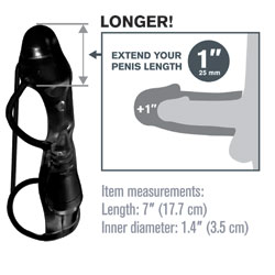 Category: Penis Sleeves Code: 665-2027 Turn your penis into an instant pleasure machine with the incredible Fantasy Xtensions. Now you can be all the man you can be and satisfy your partner with this easy to use erection enhancer. Developed as a safe, affordable, non surgical alternative to expensive medical procedures and pills, your Fantasy Xtension will give you the biggest, thickest, most satisfying pleasure rod you ever imagined. Perfect for men with ED and midway performance problems, your new enhancer will deliver results that both partners will love. Color: Black Brand: PipeDream