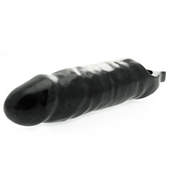 The Black Mamba is now available in an extra large version. This lifelike penis extender is sure to satisfy both you and your lover by providing an increase in size and also prolonging your erection. Simply insert your penis into the comfortable hollow shaft and slip your testicles through the stretchy ring. The extra large model features raised pleasure nubs on the inside of the shaft to provide extra stimulation for the wearer during use. Enhance your assets and get ready for action with a larger, longer lasting erection for out of this world climaxes. Color: Black Diameter: 2.5 Inches Brand: Master Series