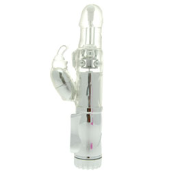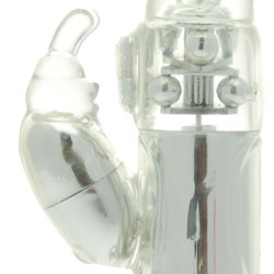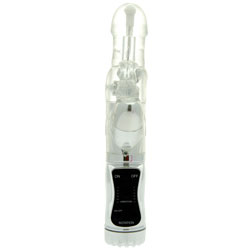 Category: Rabbit Vibrators Code: 665-3386 36 amazing stimulating function. 6 different functions for the bunny ears and 6 for the g spot stimulation. with an extra g spot bullet 2 rows of metal beads to massage you internally. The controls are easy to use and its water proof. Color: Clear Diameter: 1.75 - 2 Inches Brand: Lovin Joy