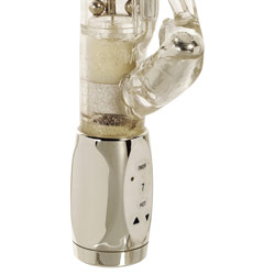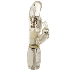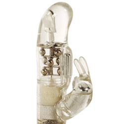 Category: Rabbit Vibrators Code: 665-3128 G spot rabbit with beads and 3 levels of vibration, A clitoral vibrator with 7 levels of vibration pulsation and escalation. Hot button to send the abbit in to a random pattern, Waterproof led lights and mini g bullet on the shaft. Color: Clear Diameter: 1.75 Inches Brand: California Exotic