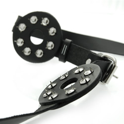 Category: Restraints Code: 665-1214 Combine beauty and pain with the Strict Leather Studded Spiked Breast Binder. This sturdy leather strap encircles the bust, with two studded leather disks placed directly over the breasts. The tiny spikes on the reverse side make for a biting reminder of who is in control. There are thoughtful cutouts to give you unfettered access to their sensitive nipples, and there are two buckles to adjust the size in the front and back. Measurements, Breast binder adjusts from 30.5 to 46 inches around, utilizing both adjustable buckles. Color: Black Brand: Strict Leather