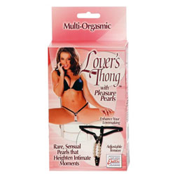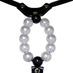 Category: Sexy Underwear Code: 665-2171 Unique G string designed specifically to enhance the pleasure of lovemaking. The large pearl beads rest on either side of the labia, giving her extra sensitivity while providing him an incredible shaft massage as he penetrates during intercourse. Color: White Brand: California Exotic
