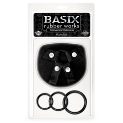 Category: Strap-on Code: 665-2133 The BASIX Universal Harness Plus Size includes 3 silicone rings. Easy to adjust and fun to use for sexy strap on play. most BASIX dildos are Strap On ready and Harness Compatible. Includes small 1.2 inches Medium 1.6 inches and Large 2 inches Silicone rings. dildo not included Color: Black Brand: PipeDream