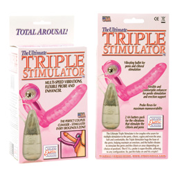 Category: Strap-on Code: 665-729 This multi speed vibrator has a flexible dong and cock ring. One for the clitoris one for the penis and one for the anus. Excellent for HER double penetration. It has a removable bullet giving the toy use with or without vibration. Color: Pink Diameter: 2.5 Inches Brand: California Exotic